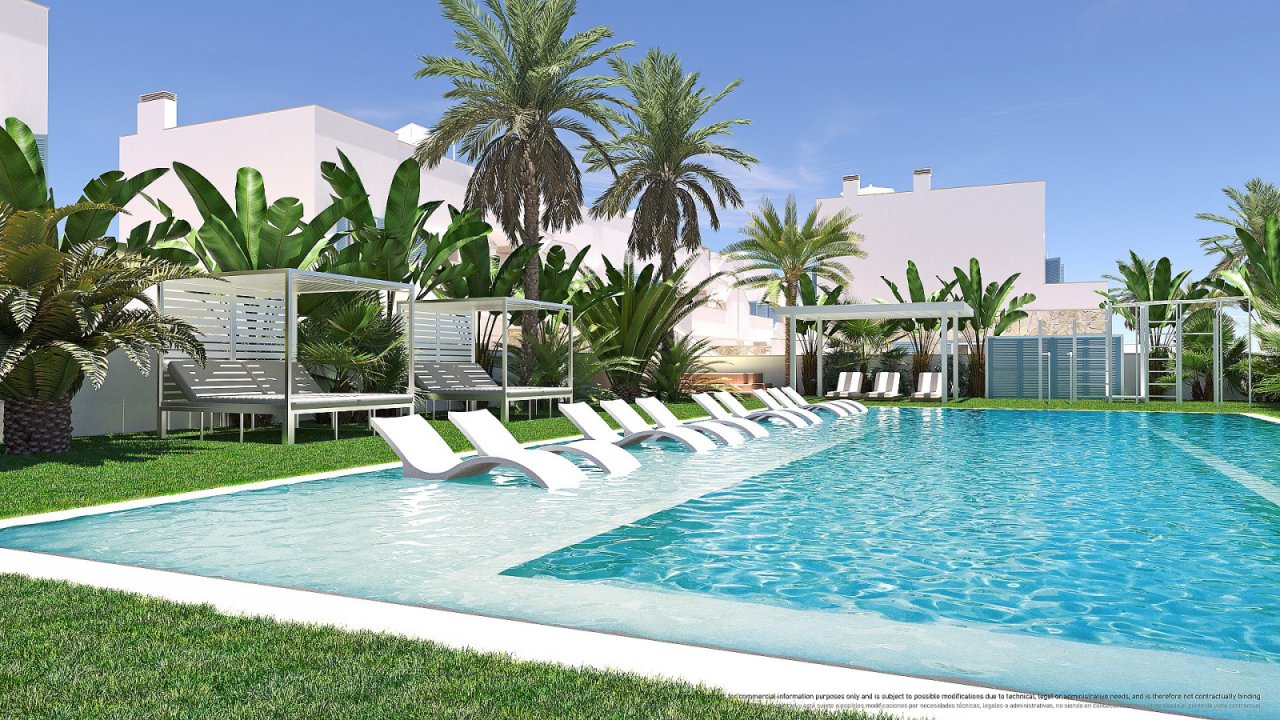 Die neu errichteten Bungalow-Apartments und Villen befinden sich in Torre de la Horadada, nur etwa 800 Meter vom Strand entfernt. Die gepflegte Wohnanlage bietet exklusive Gemeinschaftseinrichtungen wie einen Swimmingpool, einen Fitnessbereich, ein Gym sowie eine Sauna und schafft damit ein attraktives Wohnumfeld für anspruchsvolle Käufer.