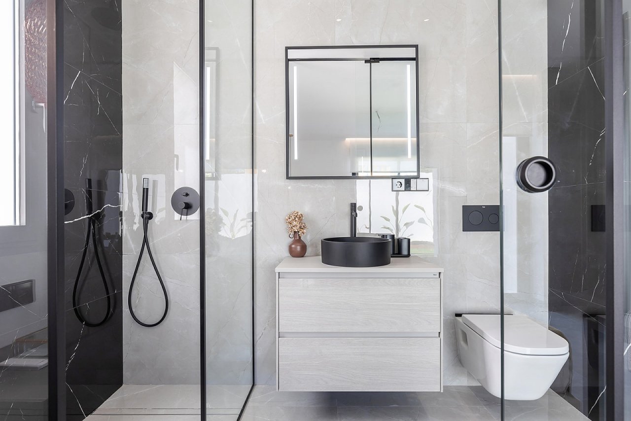 Diese exklusive Villa auf einer Ebene vereint modernes Design, gehobenen Komfort und eine erstklassige Lage. Mit drei großzügigen Schlafzimmern, zwei elegant ausgestatteten Badezimmern und hochwertigen Einbauschränken bietet sie ein Zuhause, das sowohl Stil als auch Funktionalität perfekt miteinander verbindet. Der private Swimmingpool auf dem eigenen Grundstück lädt zu entspannten Stunden im Freien ein und schafft ein luxuriöses Ambiente für Erholung, Freizeit und geselliges Beisammensein. Ein Parkplatz auf dem Grundstück rundet den praktischen Komfort ab.