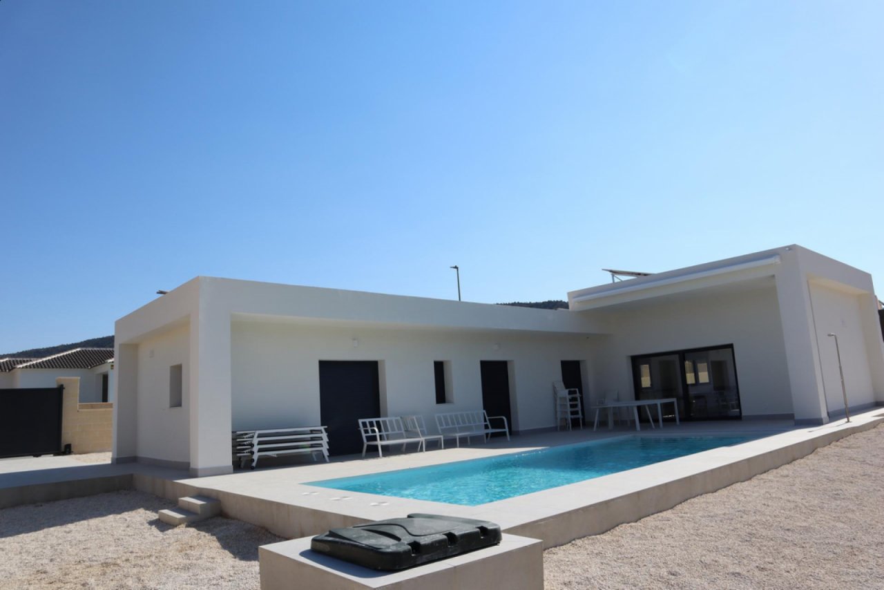 Diese wunderschöne Neubau-Villa vereint modernes Wohnen, hochwertige Bauqualität und mediterrane Lebensfreude auf perfekte Weise. Auf Ihrem eigenen, vollständig eingezäunten Grundstück genießen Sie Privatsphäre, Ruhe und ein ganz besonderes Lebensgefühl – mit privatem 8 x 4 Meter Swimmingpool, Außendusche und eigenem Stellplatz direkt am Haus.