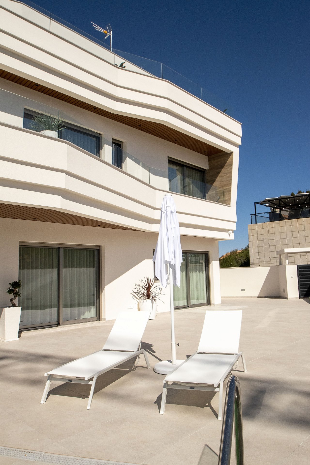 Das Neubauprojekt umfasst fünf exklusive Villen mit Meerblick, die sich harmonisch an den Berghang anschmiegen. Jede Villa erstreckt sich über drei Etagen, verfügt über mehrere Terrassen und einen Aufzug, der bequem in den Keller und die Garage führt. Die offene Architektur und großzügige Terrassen ermöglichen es, die Sonne und den atemberaubenden Blick auf das Meer jederzeit zu genießen.