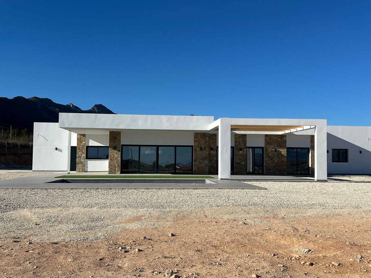Diese außergewöhnliche Villa in Hondón de las Nieves vereint modernes Design, luxuriösen Wohnkomfort und eine spektakuläre Naturlage zu einem exklusiven Wohnkonzept. Auf einem großzügigen Grundstück von rund 10.000 m² entsteht ein architektonisch beeindruckendes Zuhause mit drei Schlafzimmern, drei stilvollen Badezimmern, privatem Swimmingpool und eigener Garage – perfekt für alle, die Ruhe, Privatsphäre und gehobene Lebensqualität schätzen.