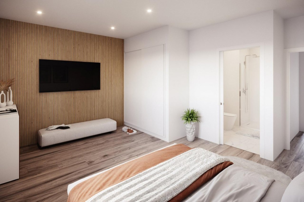 The properties are available in a ground floor model with front and rear terrace/garden and on the first floor with terrace and private solarium.