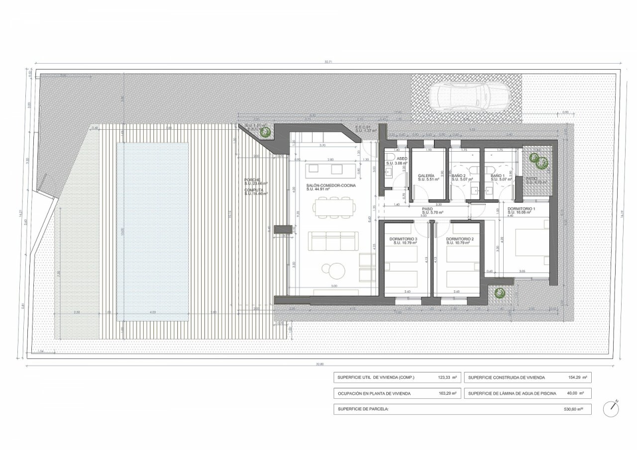 Villa provided with 3 Bedrooms and 3 Bathrooms, private swimming pool and parking space on own plot.