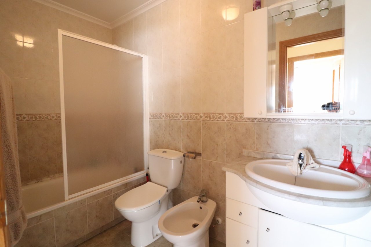 This East Facing, Two Bedroom, First Floor Apartment in Guardamar del Segura is located close to the heart of this popular coastal town. The stunning beach and promenade, lined with plenty of café bars and restaurants, are just a 5 minute drive away, with a supermarket only a 5 minute walk. La Marquesa golf course at Rojales, can be reached in around 10 minutes by car. The apartment offers a bright and comfortable living space, with an air conditioning unit and double sliding glazed doors that lead out to a private terrace overlooking the communal pool. There is a separate fitted kitchen, two double bedrooms – the master with built-in wardrobes and its own air conditioning unit – plus a family bathroom. Additional features include lift access within the block, a communal solarium, and an allocated parking space. An ideal opportunity as a holiday home, investment, or permanent residence in the sought-after area of Guardamar del Segura on the Costa Blanca South.